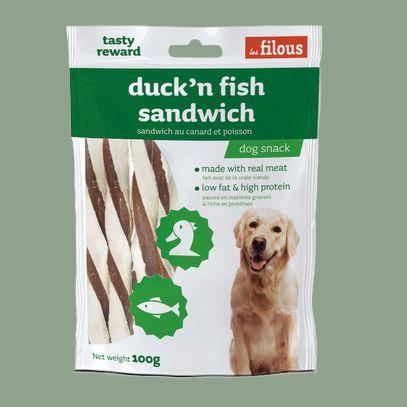 Friandises « Delicious snacks » les Filous, 100gr, sandwich canard poisson