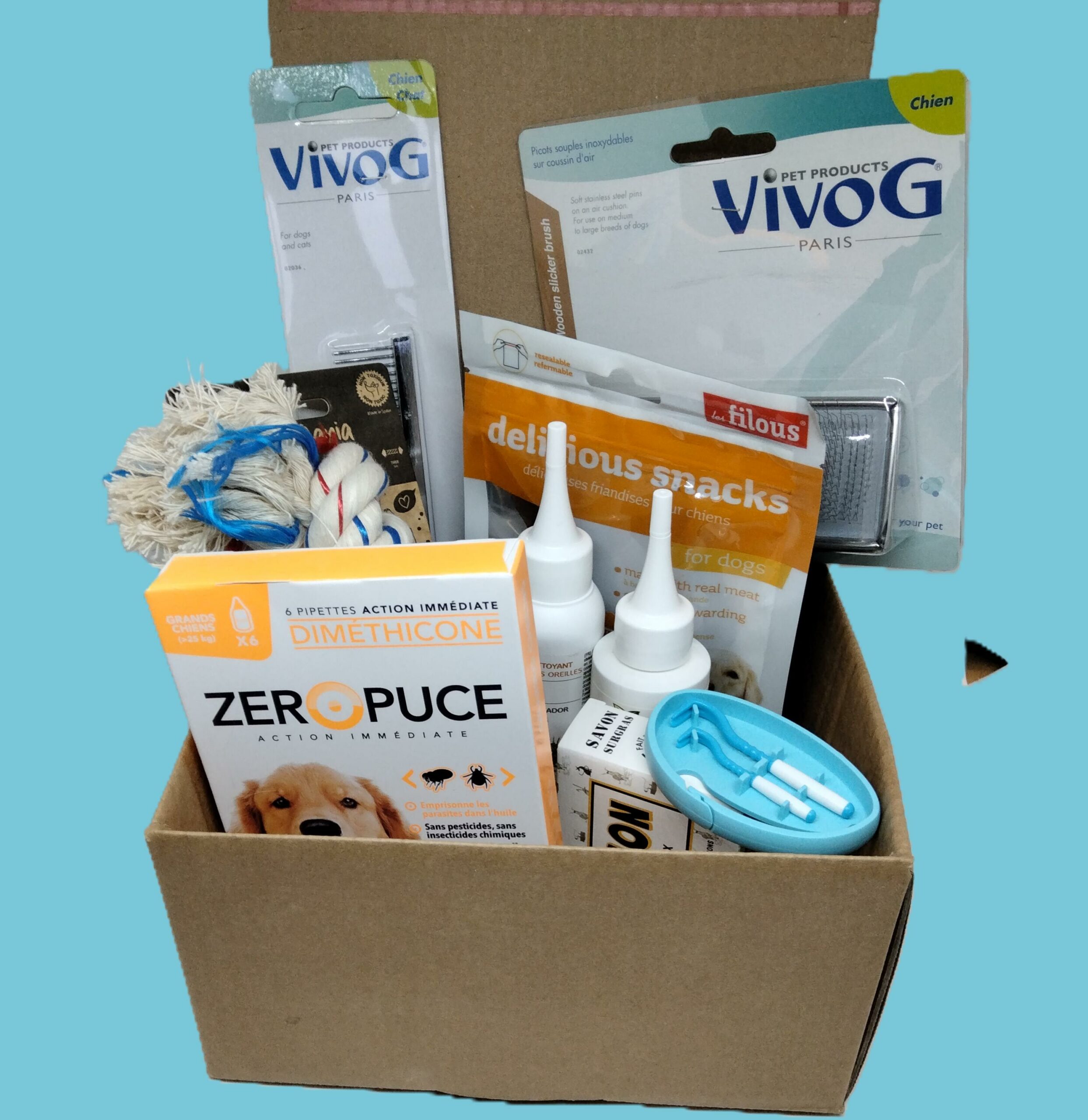 La box « L’essentielle » pour chien adulte rassemble tout ce dont vous avez besoin pour le soin et le plaisir à l’arrivée de votre animal.